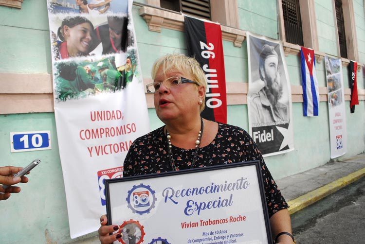 Para Vivian Trabancos Roche, condecorada con el Sello Aniversario 75 de la CTC, “nunca pensé que un combatiente del Moncada me entregara este honroso galardón, por eso para mí ha sido un momento muy especial.”