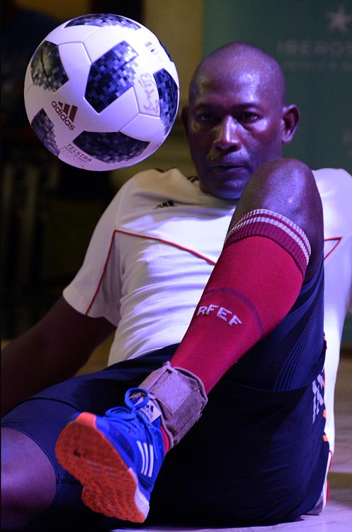 La nueva marca del orbe para dominar el balón desde la posición de sentado, solo con los pies y un lastre de kilogramo y medio en cada pierna quedó finalmente en tiempo de 3:02:03 horas.