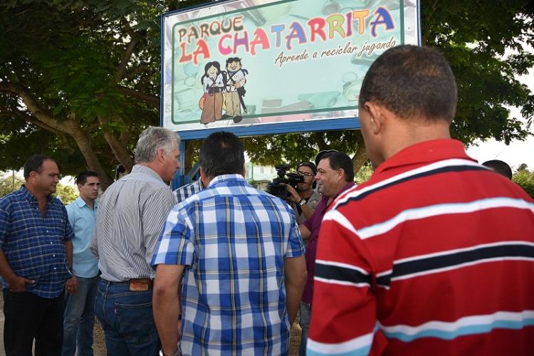 El mandatario igualmente visitó un parque realizado sobre la base de productos reciclados y muy cerca de ahí dialogó con trabajadores de AZCUBA en Ciego de Ávila.