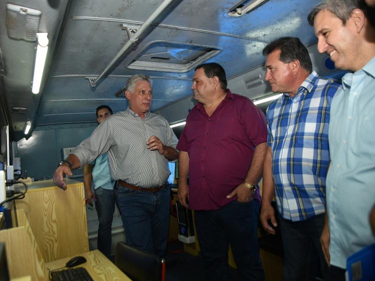 Luego Díaz- Canel visitó el Joven Club Móvil y el coche tecnológico de la provincia acompañado por varios vicepresidentes, ministros y directivos del gobierno de Ciego de Ávila.
