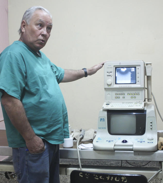 Dos equipos de ultrasonido en muy malas condiciones que hacen casi uno, dice el doctor Soto Mederos. Foto: Isabel Aguilera