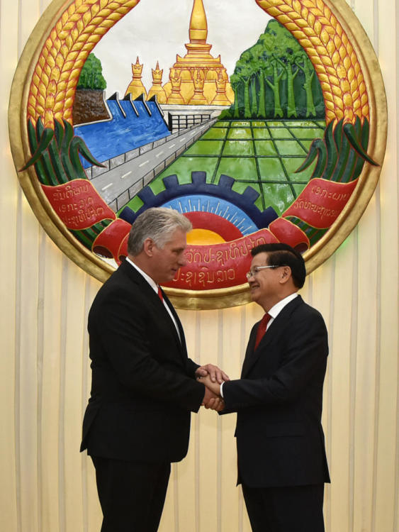 Vientiane.— Cariño, admiración mutua, incluso una familiaridad que se da por encima de lejanías geográficas o diferencias culturales, han marcado este domingo de visita oficial del Presidente de los Consejos de Estado y de Ministros, Miguel Díaz-Canel Bermúdez, y de la delegación que lo acompaña, a la República Democrática Popular Lao.