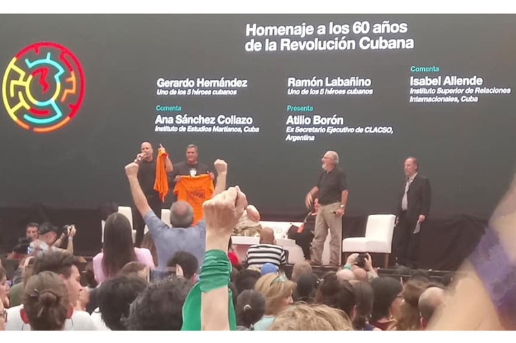 Buenos Aires.- Los héroes y luchadores antiterroristas Ramón Labañino y Gerardo Hernández fueron distinguidos aquí con el premio honorífico que otorga el Consejo Latinoamericano de Ciencias Sociales (Clacso), que dedicaron muy especialmente a Fidel Castro.