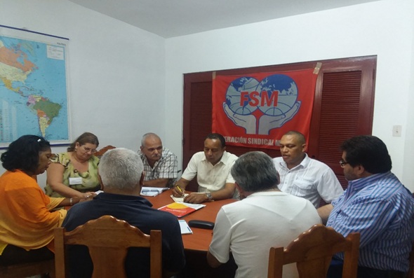 Otra reunión de trabajo también se efectuó en La Habana, en la sede la región de América de la Federación Sindical Mundial (FSM). Presidida por Maldonado Olivares, Secretario General de la UIS, versó sobre temas de interés e importancia para la clase trabajadora.