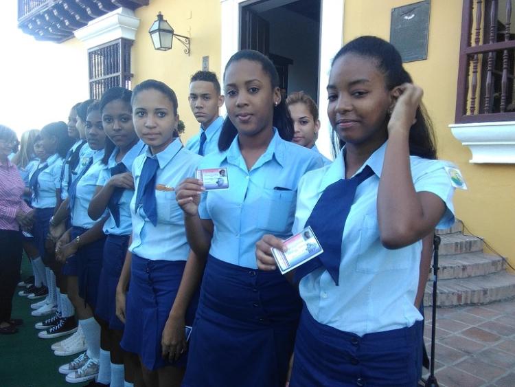 La entrega de 60 carnés de la Unión de Jóvenes Comunistas, estudiantes del nivel de preuniversitario marcó otro motivo momento del acto en el que se patentizó la continuidad de la Revolución, que a casi 60 años de su anuncio triunfal por Fidel ratifica que el pueblo cubano, fiel a sus esencias, sigue de verde olivo.