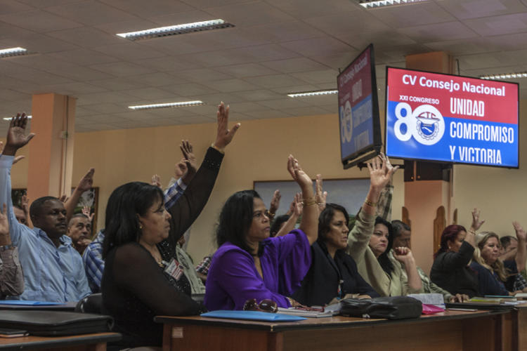 Los asistentes al CV Pleno del Consejo Nacional de la CTC valoraron los resultados del proceso de análisis y discusión llevado a efecto por los trabajadores sobre el documento Bases para el Fortalecimiento de la Misión del Movimiento Sindical Cubano