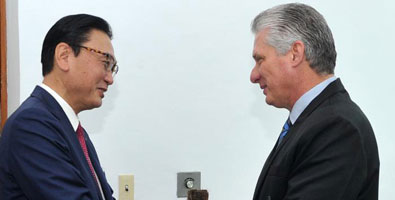 EL Presidente de los Consejos de Estado y de Ministros, Miguel Díaz-Canel Bermúdez, recibió en la mañana de este martes al señor Keiji Furuya, Presidente de la Liga Parlamentaria de Amistad Japón-Cuba, quien realiza una visita en el contexto de las actividades conmemorativas por el aniversario 120 de la migración japonesa a nuestro país.