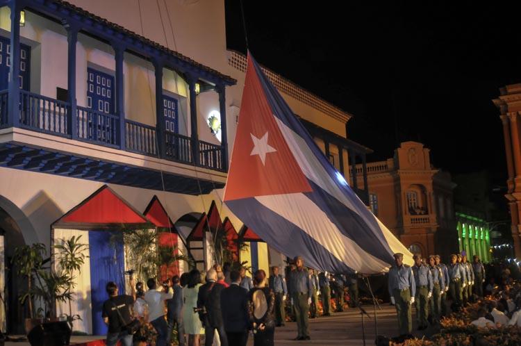 En Santiago de Cuba se celebró la Fiesta a la Bandera, tradición en esa ciudad oriental desde hace más de un siglo. Todos los 31 de diciembre, cuando apenas unos segundos separan al año que recién concluye del venidero, la enseña nacional es izada en el mástil del antiguo Ayuntamiento, en el Parque de Céspedes.