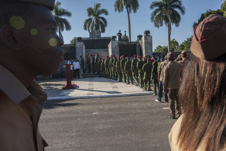 Jóvenes y mayores hacían fila frente al Panteón de los Veteranos de la Necrópolis de Colón para rendirle tributo a quien todos recuerdan por su participación directa en la dirección de los combates en Playa Girón, contra la invasión mercenaria en 1961, bajo las órdenes del Comandante en Jefe Fidel Castro Ruz.