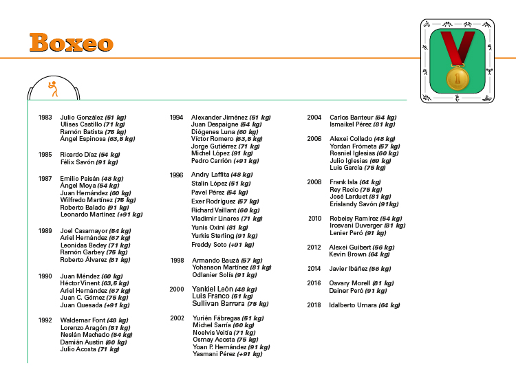 Los resultados del deporte élite cubano se sustentan en un desempeño activo de la categoría juvenil. En 11 de las 15 disciplinas en las que se ha podido competir a nivel mundial la suma de títulos asciende a 187, lidereado por el boxeo (75), el atletismo (28), la lucha (27), las pesas (19), el béisbol (16) y el judo (11). Complaciendo a muchos lectores y para que quede en sus archivos, Trabajadores les regala los nombres de los 440 bisoños titulares del orbe, muchos de ellos con medallas universales u olímpicas luego de vencer los 18 años.