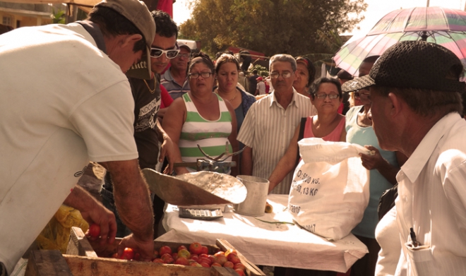Cada jornada dominical se convierte en escenario en el que confluyen, además de los necesitados, diversas formas productivas, estatales y no estatales, y un gran número de intermediarios, autorizados o no, esos personajes “sacrificados” que burlando leyes, resoluciones y normas “luchan” mercancías en otros territorios sin importarles ni las distancias, ni los costos, porque las ventas, a precios desorbitantes, justifican la inversión.