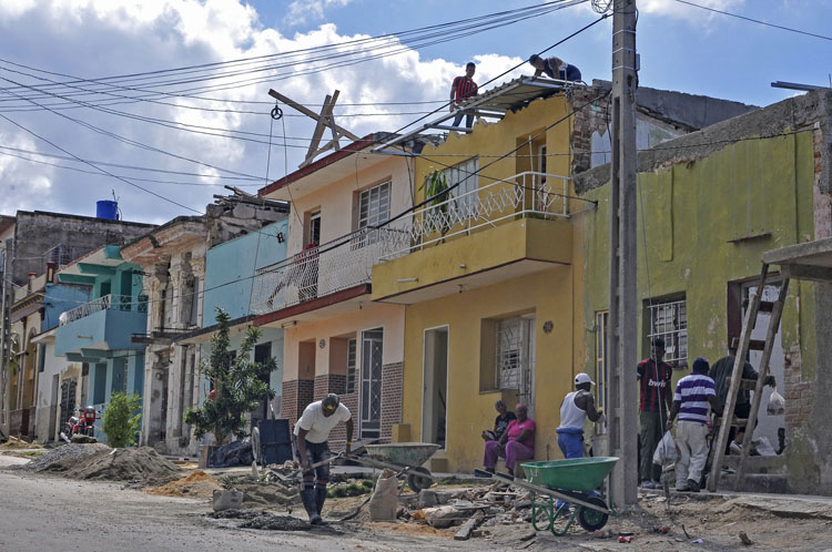 El Contingente Blas Roca Calderío, las cooperativas no agropecuarias de la construcción, estudiantes, trabajadores de varios sectores, sindicatos y pueblo en general derraman sudor entusiasmo y mucho trabajo en la reconstrucción de uno de los municipios habaneros más afectados, el de Diez de Octubre por el tornado del 27 de enero.