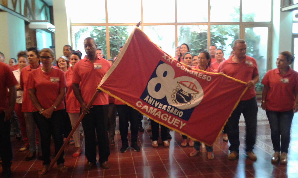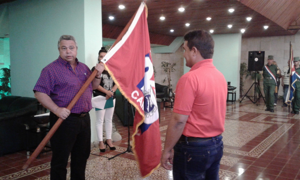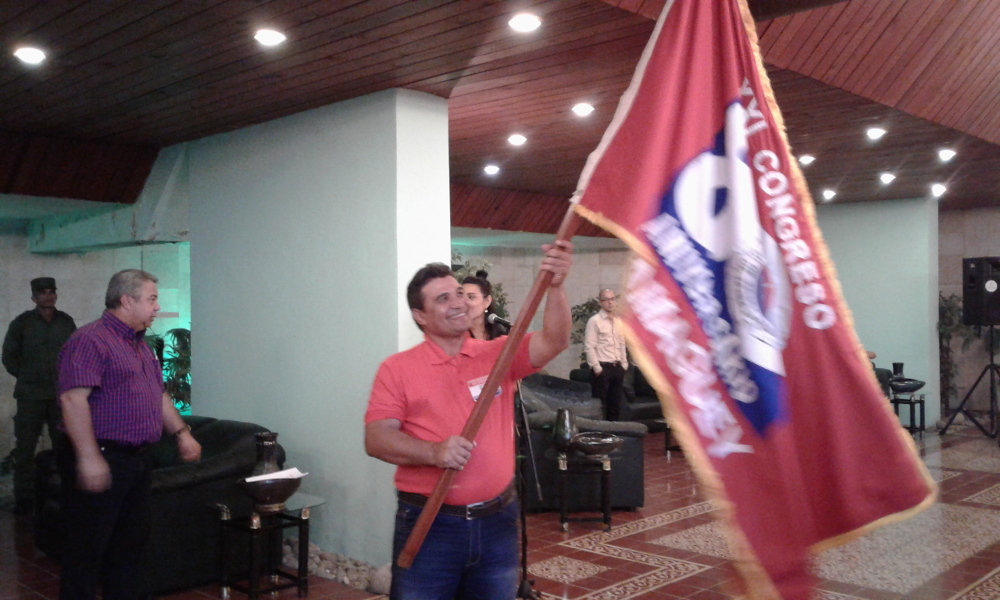 En el salón de protocolo de la plaza de la Revolución Ignacio Agramonte, Guilarte de Nacimiento entregó a Yulián León Rondón, secretario del Comité Provincial, el estandarte, que acompañará a los 78 delegados, que junto a cinco invitados, representarán a la clase obrera camagüeyana.