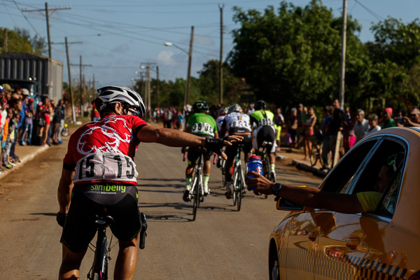 Mario Couso, del equipo Santiago de Cuba, recibe abasteciento durante la octava etapa (Cienfuegos-Cárdenas 162 km) del VI Clásico Nacional de Ciclismo de Ruta. FOTO: Calixto N. Llanes/Periódico JIT (Cuba)