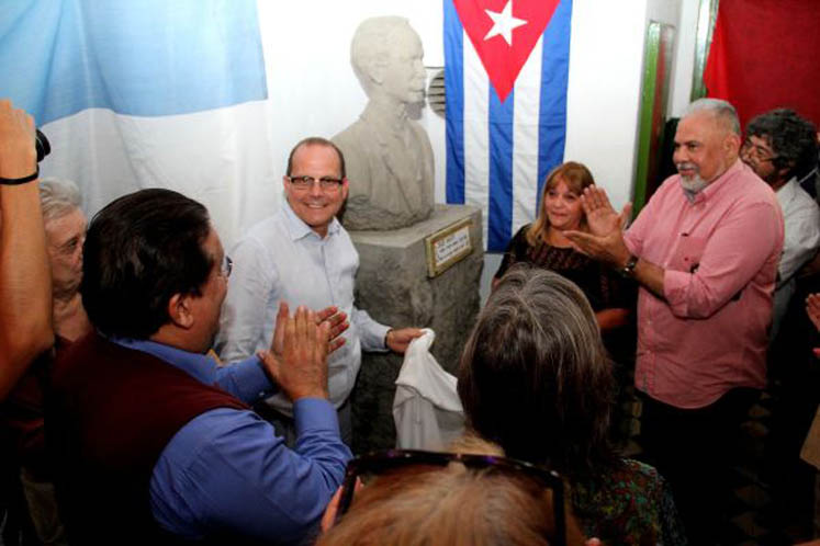 Concebida para homenajear al líder independentista, la efigie fue descubierta en una ceremonia presidida por el embajador cubano en este país, Orestes Pérez, quien estuvo acompañado por otros miembros del cuerpo diplomático acreditado en Buenos Aires.
