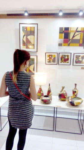 Originalidad, glamur y buen gusto trascienden en estas propuestas, entre las que llaman la atención el Reloj mural, de la serie Tierra, realizado con la técnica de acrílico sobre madera, cerámica, PVC y metal; así como las lámparas y los jarrones de la serie Lunas azules (acrílico sobre cerámica), estas últimas, quizás, las mejor acabadas en el tratamiento y estructuración del lenguaje de los pigmentos.