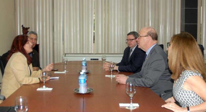 La subdirectora de la Dirección General de Estados Unidos del Minrex, Johana Tablada, dio la bienvenida al legislador demócrata por Massachusetts.