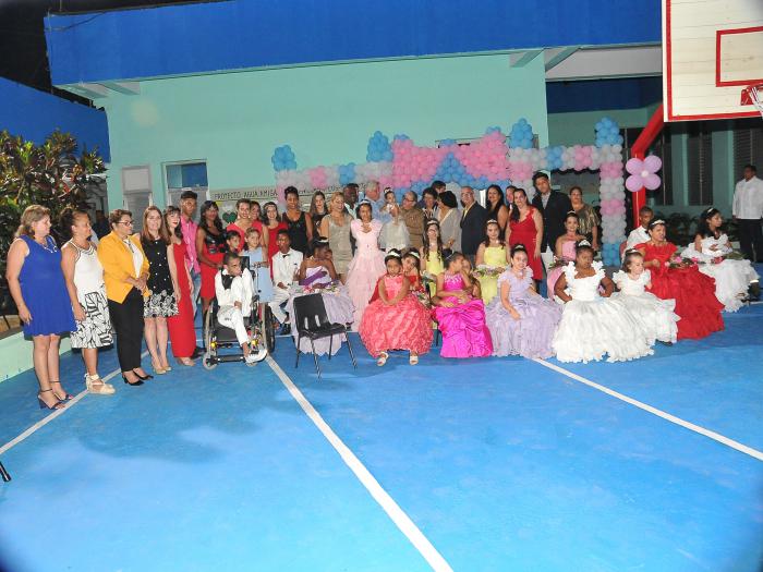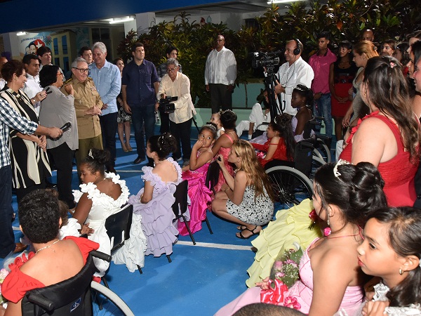 Como había sucedido el año anterior — también en otro día de abril — Raúl asistió a la fiesta de quince que, en inviolable tradición, cada año la escuela celebra a sus “niños”. Esta vez, fueron ocho muchachas y tres muchachos, que con traje impecable y el acompañamiento delicado de sus familiares y maestros, bailaron el vals como lo hacen todos los quinceañeros en Cuba. Para ellos también hubo globos, cake, regalos y música, tocada con el alma y el regocijo de la compañía infantil de teatro “La Colmenita”.