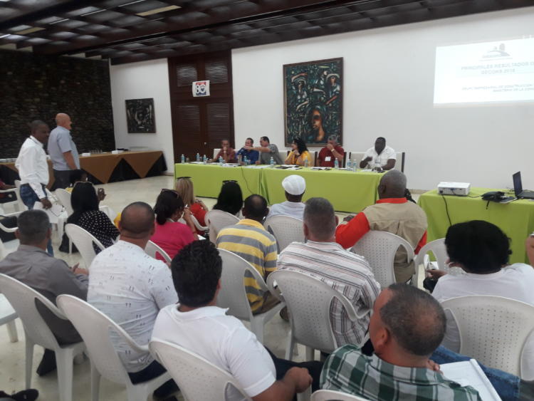 Se encuentran presentes Consuelo Baeza Martín, miembro del Secretariado Nacional de la CTC; Carlos Antonio de Dios Oquendo, secretario general del Sindicato de la Construcción (SNTC), y directivos de esa Osde.