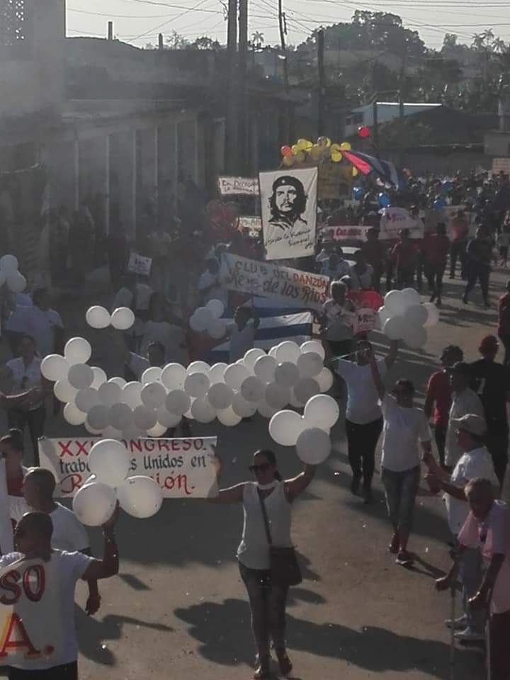 Tengo la suerte de ver el desfile desde la tribuna. La vista se pierde en la multitud. Son miles de personas entusiasmadas, que gritan consignas, saludan… El día Primero de Mayo no se parece a ningún otro en el año cubano. Es como si las energías se multiplicaran. La fiesta –fiesta al fin- está llena de alegría, pero se presenta diferente, como si saliera del corazón, de las raíces.