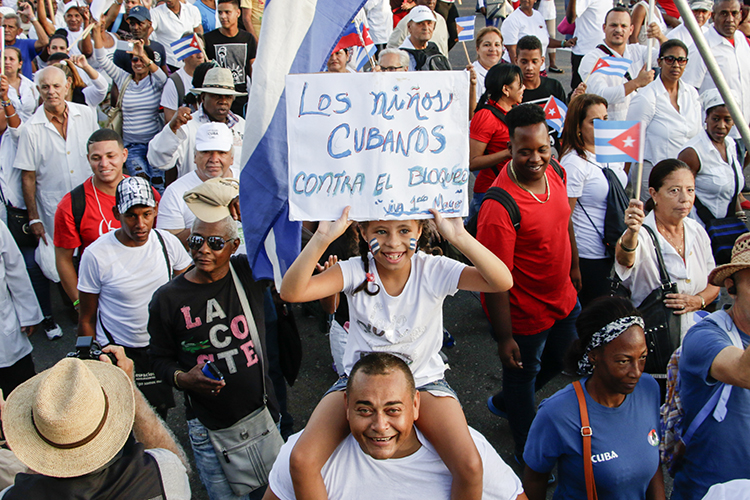 el cese del criminal y genocida bloqueo económico, comercial y financiero impuesto a Cuba que ahora se recrudece con la aplicación del Título III de la Ley Helms-Burton.