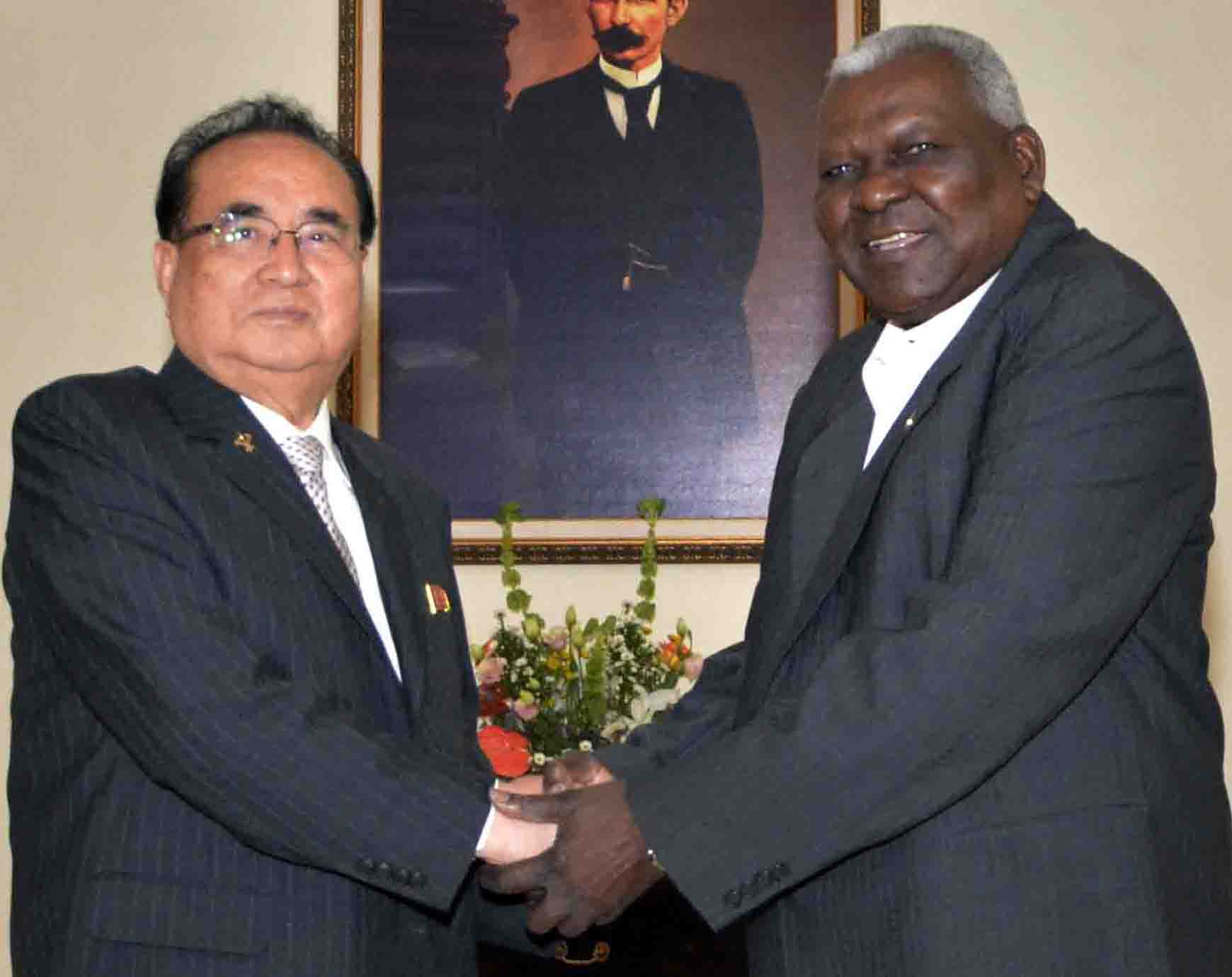 Acompañaron al visitante, el Embajador de la República Popular Democrática de Corea en Cuba, Ma Chol Su, y otros miembros de la delegación.