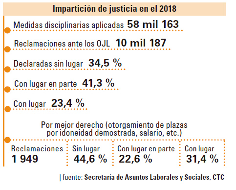 La mayoría de las reclamaciones, señala Isdalis, fueron Con lugar y Con lugar en parte, lo cual revela que el OJL ejerce su papel ante la violación de los derechos de los trabajadores. De manera similar se comportan las reclamaciones por mejor derecho, o sea otorgamiento de una plaza por idoneidad demostrada, salario u otros.