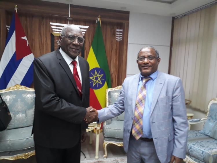 Valdés Mesa, como parte del intercambio, saludó al canciller de Etiopía, Gedu Andargachew, con quien ratificó la posición histórica de apoyo mutuo entre las naciones, así como la lucha contra el bloqueo.