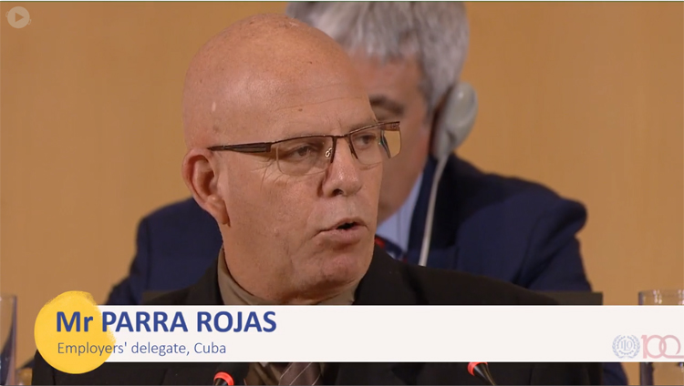 Mientras que Rodolfo A. Parra Rojas, representante cubano por la parte de los empleadores, sostuvo que “el diálogo social tripartito es un pilar que mantiene una actualidad absoluta y es la vía exclusiva para poder avanzar. Estos cien años de la OIT así lo han demostrado”.