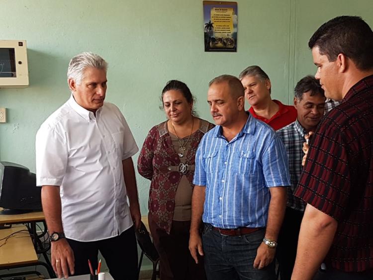 Durante su recorrido por el territorio Miguel Díaz-Canel Bermúdez, Presidente de los Consejos de Estado y Ministros, intercambió con docentes sobre la utilización de las nuevas tecnologías en el proceso docente educativo, los resultados en los exámenes de ingreso a la Educación Superior y la necesidad de incentivar en los jóvenes el estudio de la historia a partir de la vinculación de esta con el resto de las asignaturas.