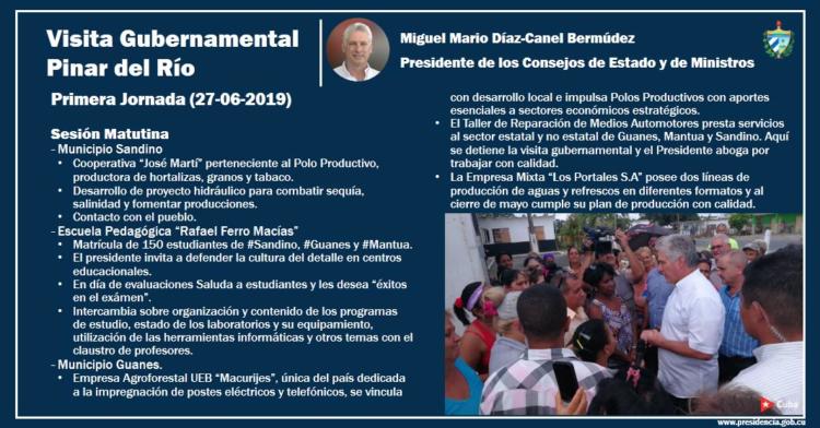 Hasta aquí llegó la visita gubernamental a #PinarDelRío en la mañana de este #Jun27#SomosCuba #SomosPinar pic.twitter.com/drdkCkQPEG— Presidencia Cuba (@PresidenciaCuba) June 27, 2019