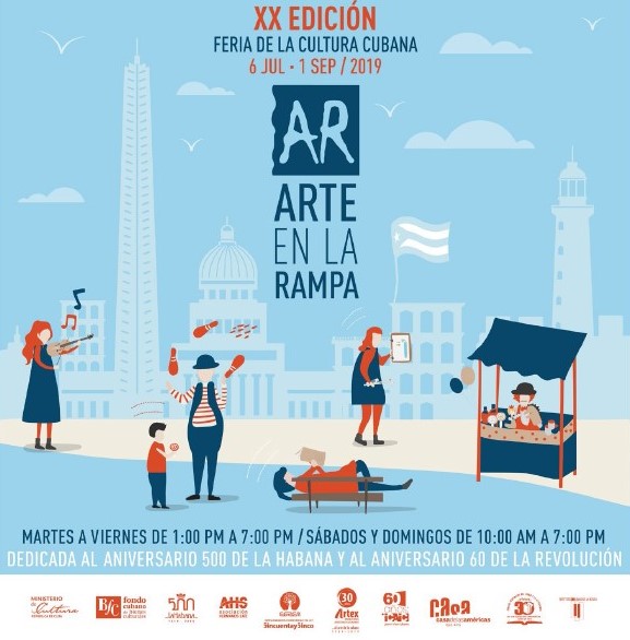 Dedicada al aniversario 500 de la fundación de La Habana y al sexagésimo del triunfo revolucionario, la vigésima edición de la Feria de la Cultura Cubana Arte en La Rampa abrirá desde este sábado 6 de julio hasta el primero de septiembre de 2019, en su habitual sede del Pabellón Cuba.