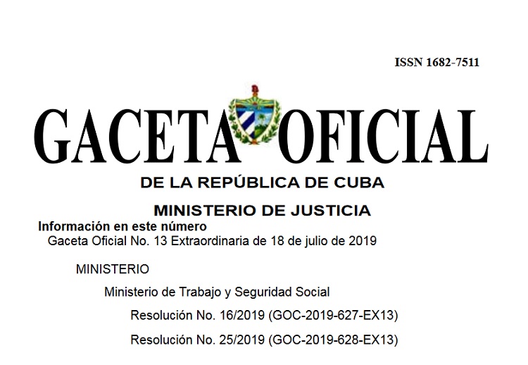 Por su importancia, Trabajadores reproduce de manera íntegra el texto de las resoluciones No. 16 y 25/2019 del Ministerio de Trabajo y Seguridad Social, referidas al incremento de pensiones y salarios al sector presupuestado, publicado en la Gaceta Oficial No. 13 (Extraordinaria) este 18 de julio de 2019