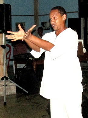 Eudy Leslie, de Teatro Cimarrón, interpretó los poemas Capitán de la clase obrera, texto inédito de Alberto Curbelo, y Por esta libertad, escrito por Fayad Jamís. Foto: Alberto Castañeda