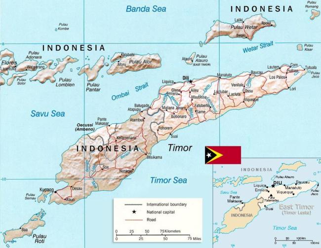 El nombre oficial de esta nación es República Democrática de Timor Oriental, en un tiempo fue conocido también como Timor Portugués. Ocupa la parte oriental de la isla de Timor, junto con el enclave de Ambeno, situado en la costa noroccidental de la isla. Fue invadido por Indonesia en 1975, que lo ocupó hasta 1999. El país logró su total independencia el 20 de mayo de 2002.