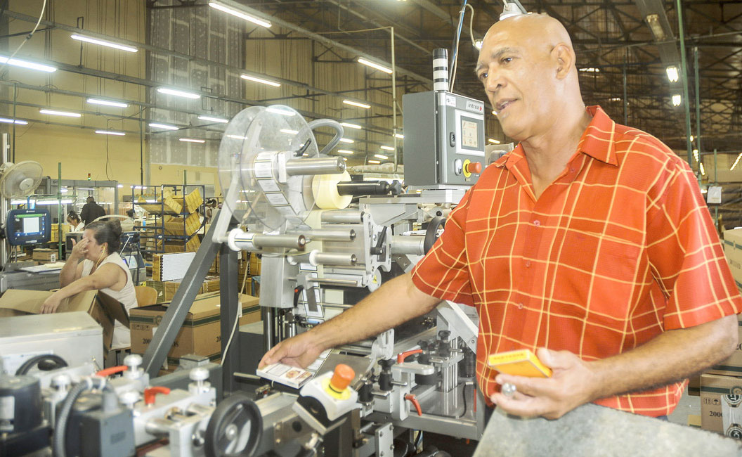 “Anteriormente todos esos sellos había que ponerlos manualmente en las cajas de tabaco. Eran tres operaciones en tres máquinas diferentes. Innovamos. Compramos una etiquetadora doble, y en ella hacemos, en un mismo momento, la primera y última de las operaciones. Con eso liberamos una máquina”, explicó Víctor, también a cargo de la innovación tecnológica por la dirección de la fábrica.
