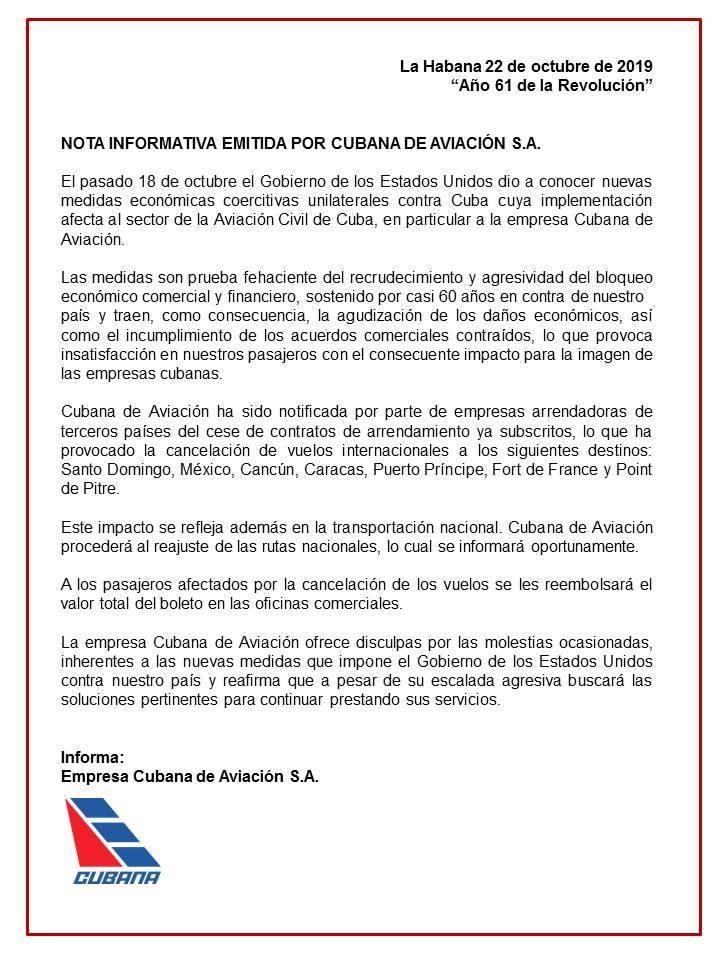 — SERVAC ¨Empresa de Servicios a la Aviación¨ (@ServacCuba) October 15, 2019