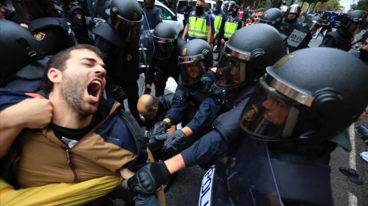 QUE HORROR. que pasa en el mundo, los pueblos protestan y la respuesta es violencia brutal, en Chile por dejar de agredir lo hicieron contra un representante de los Derechos Humanos. Estas escenas en Cataluña son tremendas, me dan miedo aún cuando estoy a una gran distancia y me llama la atención que en todos los lugares donde se protesta la principal consigna es EL PUEBLO UNIDO JAMAZ SERA VENCIDO