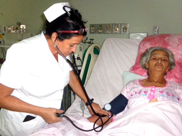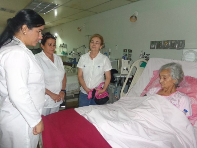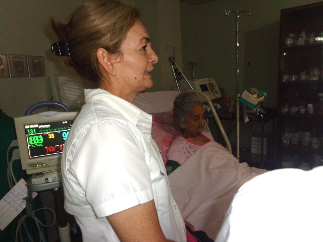 “Pero, continúa el relato, el domingo le dio vómitos y se puso peor, recayó y volví a llamar al doctor, la reconoció y dijo que tenía que ingresar de nuevo. Así lo hicimos y va recuperándose satisfactoriamente”, dice Belkis con la vista fija en Lourdes Abreu González, la enfermera intensivista que ha estado siempre presta a sus llamados.