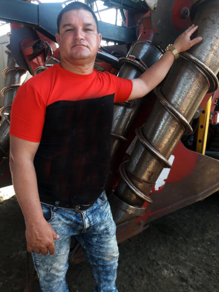 “Desde que salí del servicio militar estoy sobre una combinada. Esto es lo mío. Ya llevo 14 años en los campos de caña. Ahora tengo una Case de estera. Esa es una locomotora, es pa’lante y pa’lante. En la próxima zafra quiero cortar 4 millones de arrobas. Eso dependerá, sobre todo, del transporte. Si hay camiones y el tiro es estable, podré cumplir el compromiso, aunque los caminos están muy malos. Una ventaja es contar con 12 remolques autobasculantes y un buen lote de tractores YTO, T-150-K y Belarús”, explicó.