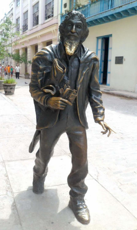 Este icónico personaje que hoy custodia en bronce la plaza de San Francisco de Asís, no era cubano. Se presume que llegó a la isla alrededor de 1913, a bordo del vapor alemán Chemnitz, procedente de su natal Fonsagrada, en Galicia, España.