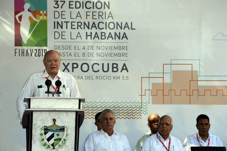 «Nuestra economía precisa que la inversión extranjera juegue un papel más activo para potenciar las exportaciones; en ese sentido continuaremos trabajando», afirmó Rodrigo Malmierca Díaz, ministro de Comercio Exterior e Inversión Extranjera al inaugurar la XXXVII Feria Internacional de La Habana, donde asistió el presidente cubano Miguel Díaz-Canel.