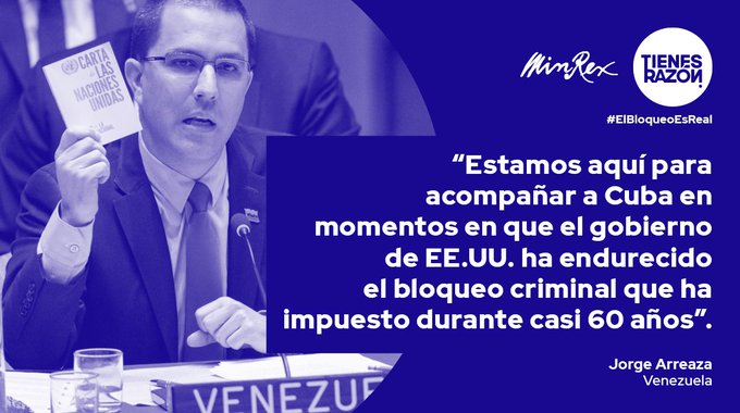 El mundo contra el bloqueo. Desde la Asamblea General de Naciones Unidas en la que continúa el debate del proyecto de resolución cubano y desde todos los continentes, los pueblos y gobiernos están con Cuba. #VictoriaDeCuba pic.twitter.com/dF1JD8Mb4f