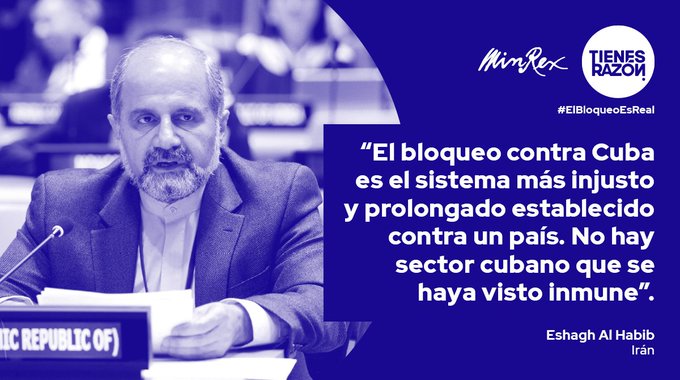 “Acabar con el bloqueo económico, comercial y financiero sería un paso importantísimo para mejorar la calidad de vida del pueblo cubano. Mi delegación considera que la imposición de medidas económicas unilaterales es algo contraproducente. Estas medidas reducen las perspectivas de resolver las diferencias”.