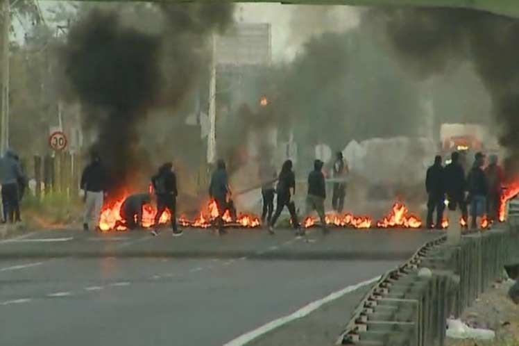 Así, en la norteña ciudad de Iquique fueron saqueadas varias tiendas incluido un supermercado donde fueron utilizados los productos para incendiar barricadas en las afueras de la instalación.