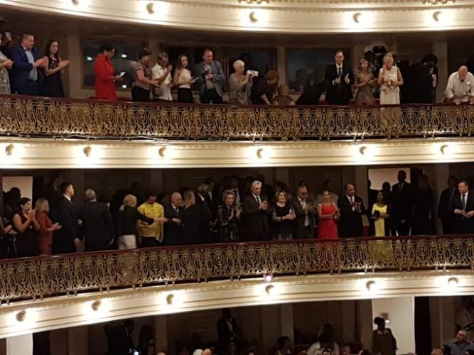 Miguel Díaz-Canel Bermúdez, presidente de la República, asiste a la gala del ballet de San Petersburgo, en el Gran Teatro de La Habana, incluida en el programa de actividades que realiza la ciudad rusa en homenaje al aniversario 500 de la capital cubana.