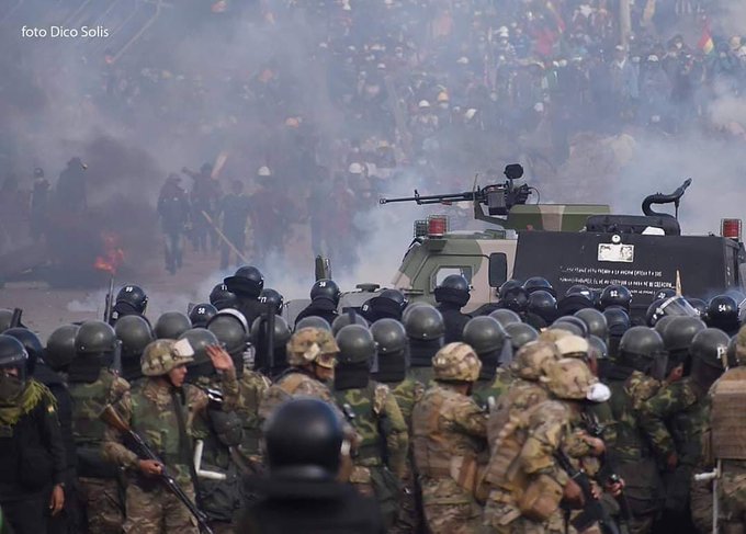 La que se autoproclamó “presidenta” emitió el viernes último, 15 de noviembre, un decreto que autoriza la violencia castrense. El saldo hasta ahora es de 24 muertes, pero la cifra crece y los autores quedan eximidos por decreto. La disposición llegó luego de la masacre en Cochabamba contra la marcha de trabajadores cocaleros que exigía el regreso del presidente Evo Morales. Solo allí hubo nueve muertos y 105 heridos.