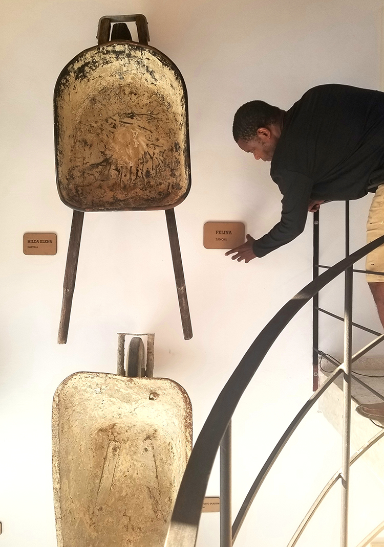 Llama la atención la esperanza a la que invita una de sus instalaciones: un cúmulo de carretillas ascienden un muro camino al cielo. Podría simbolizar una sutil diferencia etimológica: nunca se debe confundir renuencia con renuncia, siempre hay caminos menos llanos, propuestas contra la inmovilidad espiritual que impulsan a otras dimensiones, o incluso renuencias, sí, pero a la propia desidia o escualidez que obsequian estas imágenes; una especie de autosugestión contra las anécdotas, conflictos y sueños que el artista decidió no incluir en los puntos cardinales de una foto.