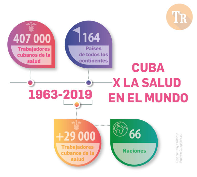 Según datos aportados por el ministro de Salud Pública, doctor José Ángel Portal Miranda, al intervenir en la 72 Asamblea Mundial de la Salud efectuada en el mes de mayo del actual año, desde 1963 hasta la actualidad, 407 mil profesionales cubanos de la Salud han estado presentes en 164 países de todos los continentes. El ministro afirmó que en 2019 se encontraban más de 29 000 en 66 naciones.