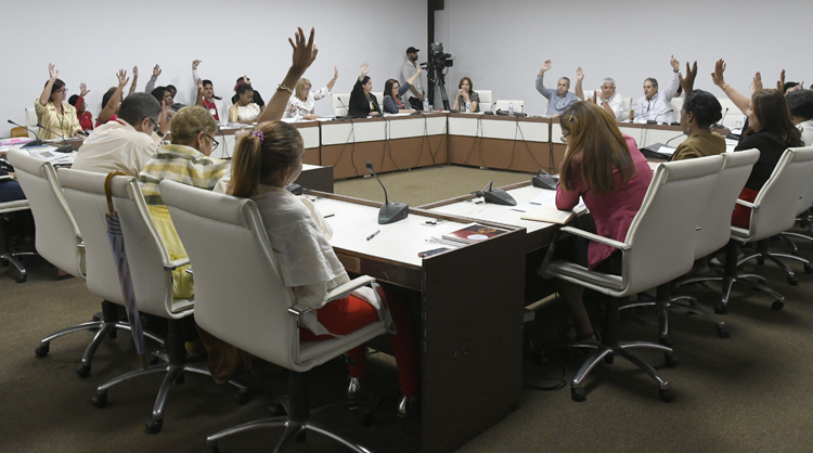Toledo Santander explicó que le corresponde a la Asamblea Nacional decidir la constitucionalidad de los actos del Consejo de Estado y ratificar o no sus decisiones, en atención a los incisos e y f del artículo 108 de la Constitución. Se refirió a 14 decretos leyes y acuerdos sobre diferentes temáticas adoptados entre julio del pasado año y diciembre del actual y dio lectura a un dictamen que propone a la asamblea su ratificación, lo cual fue aprobado por los integrantes de la comisión.